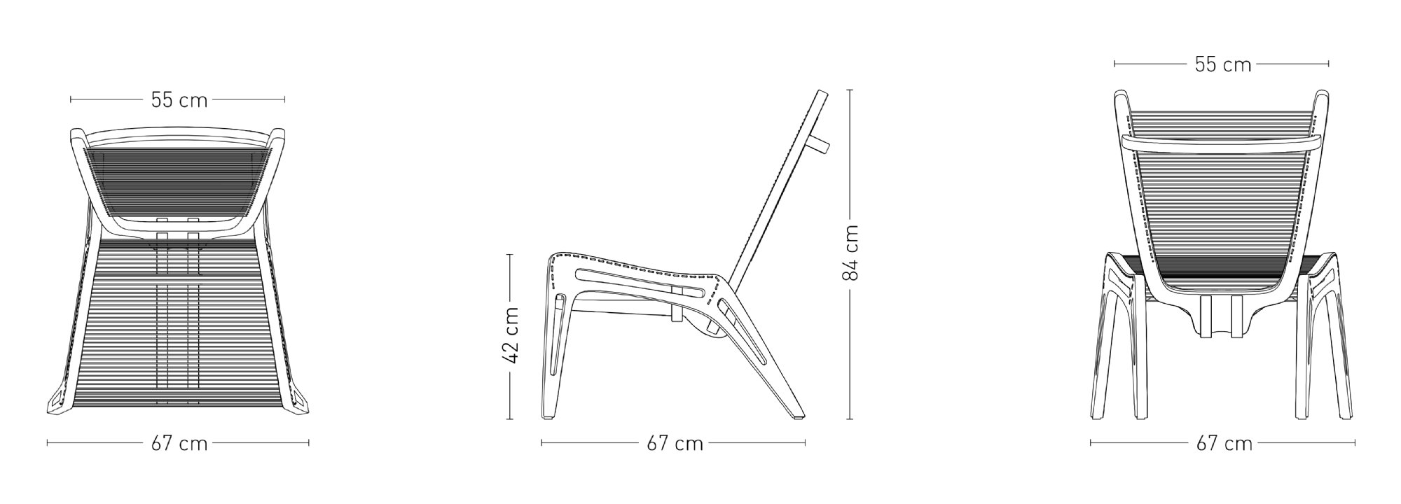 With its both directional and curved shape Cord Lounge Chair has a bold and energetic appearance. Somehow, the chair appears very down to earth and honest, and therefore it seems very accommodating. Moreover, the chair has a very good comfort due to elastic cords.